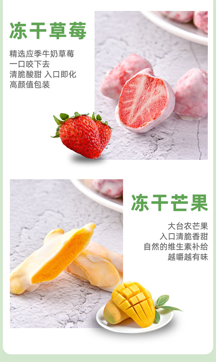 混合水果冻干草莓榴莲芒果综合水果冻干涂层网红休闲零食