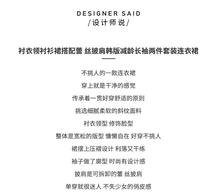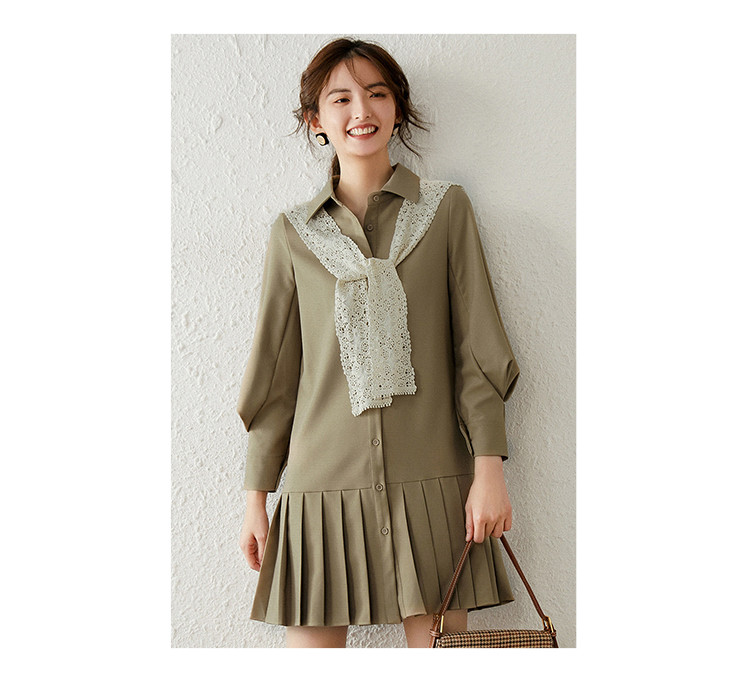 【蕾丝披肩百褶衬衫裙】21秋新款时尚减龄韩版长袖两件套连衣裙