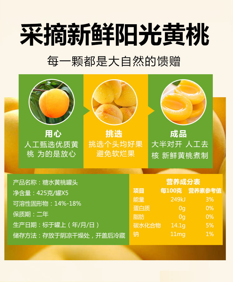 黄桃罐头425gX5罐装