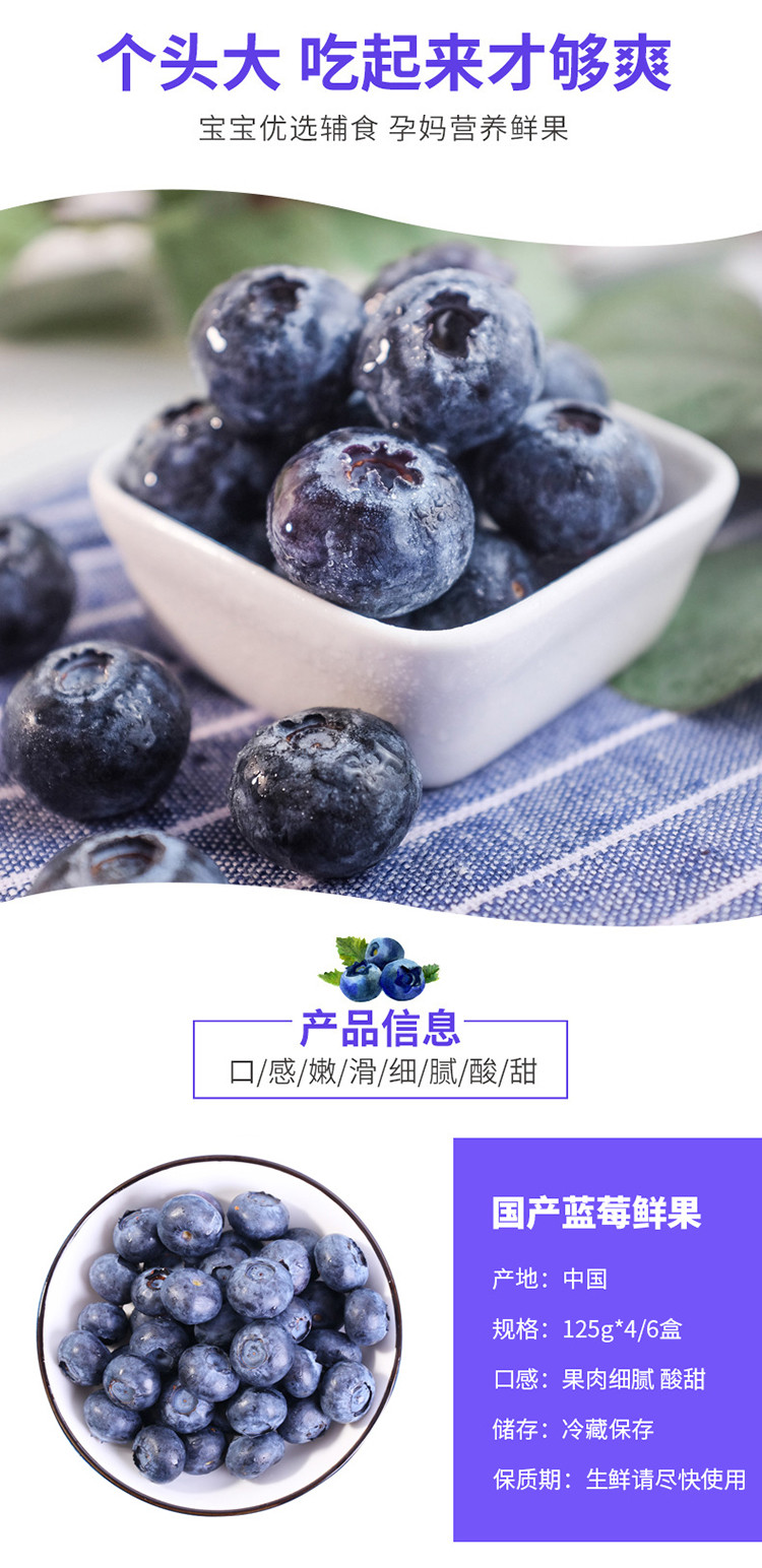 新鲜现摘蓝莓 孕妇生鲜水果宝宝辅食应季时令鲜果盒装蓝莓