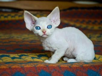 无论对老年人还是孩子来说,都不失为理想的宠物。 卷毛猫的皮毛近似贵宾犬,既便于梳理又不易因掉毛而引发主人的过敏反应。