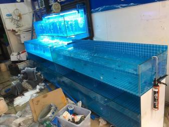 海鲜池改造:改造海鲜池的不足之处,无氧气,氧气不足、无过滤,过滤效果差,加装制冷机,加装灯光等水族工程服务。