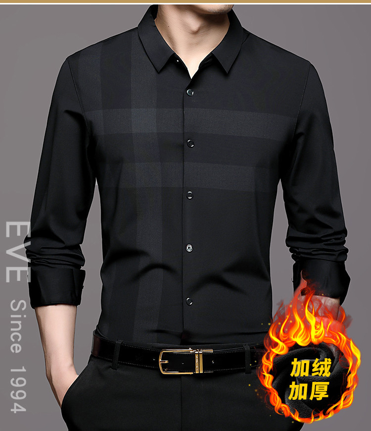 【加绒保暖】21秋冬新品男式加绒衬衣柔软色织条纹保暖衬衫男