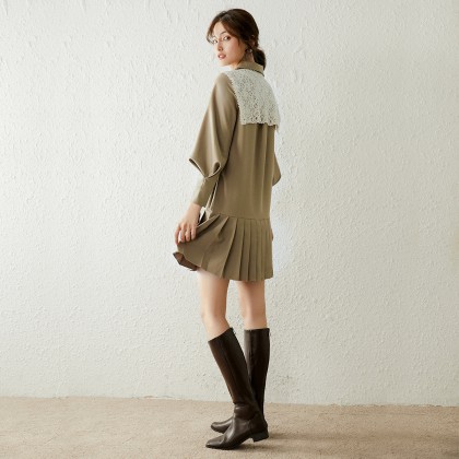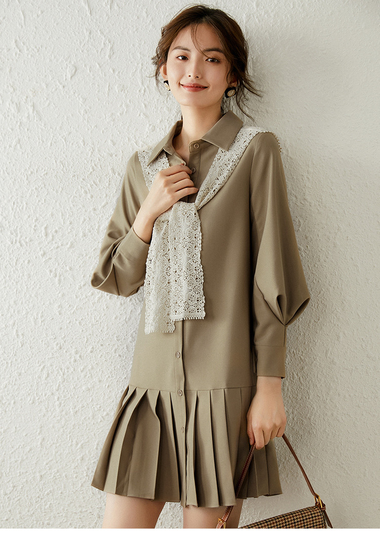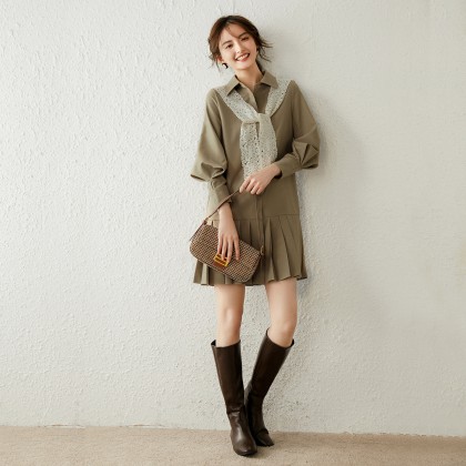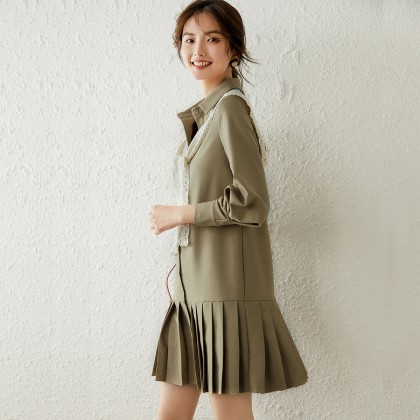 【蕾丝披肩百褶衬衫裙】21秋新款时尚减龄韩版长袖两件套连衣裙