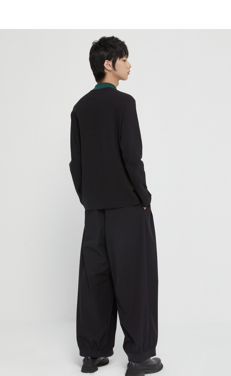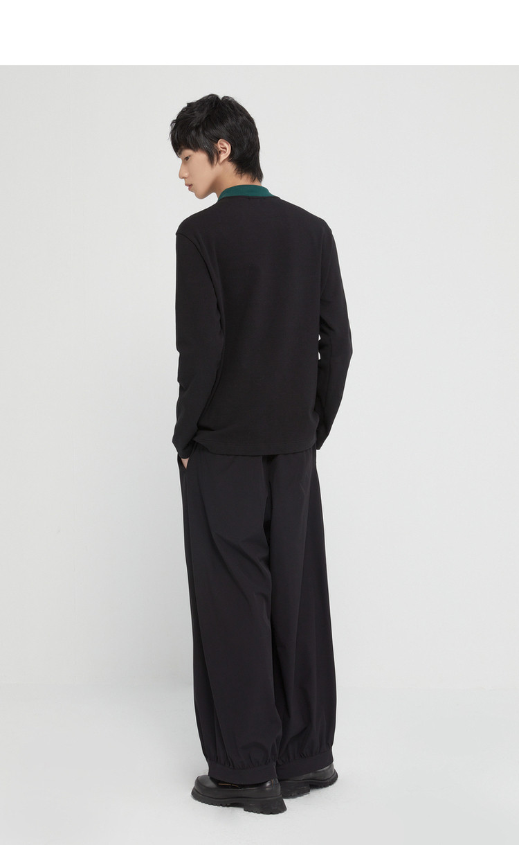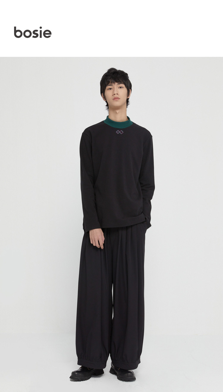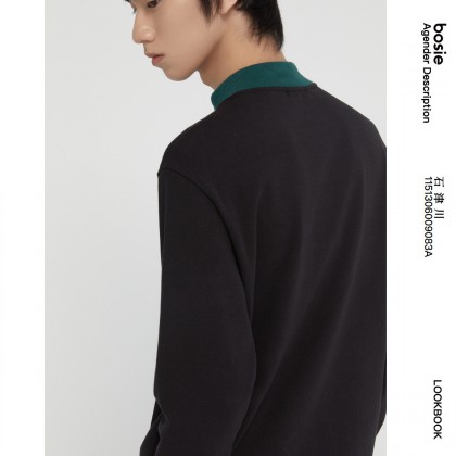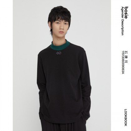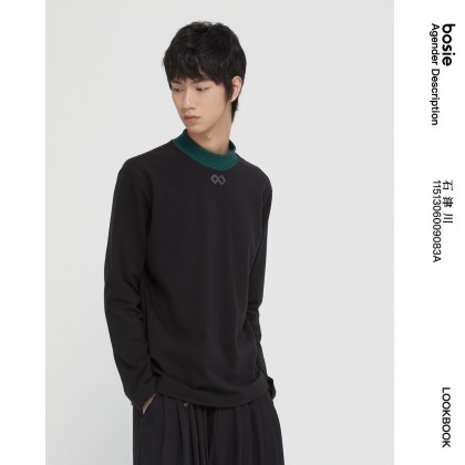 bosie 石津川针织打底衫刺绣撞色领口长袖内搭情侣