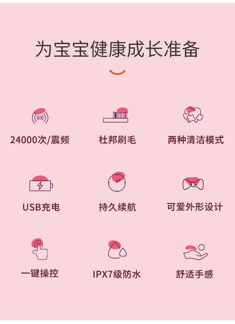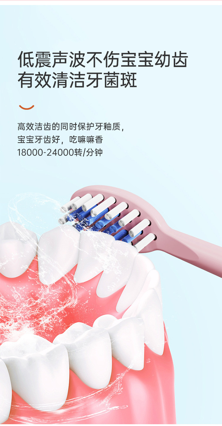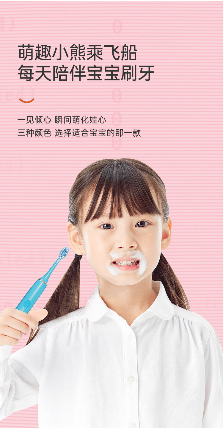 【儿童电动牙刷】软毛刷3-12岁宝宝智能儿童电动牙刷充电式