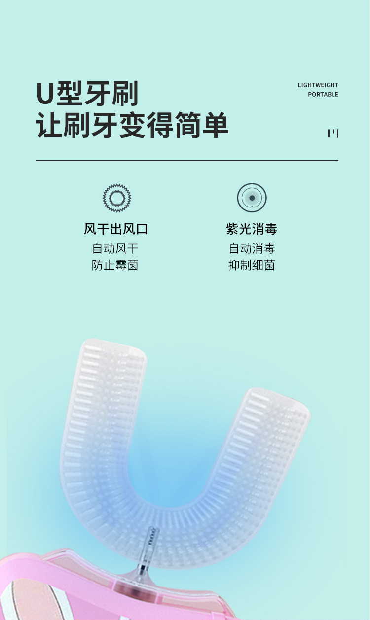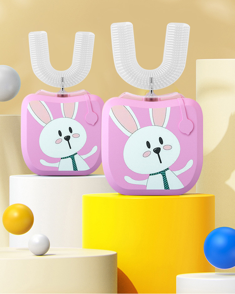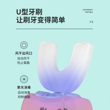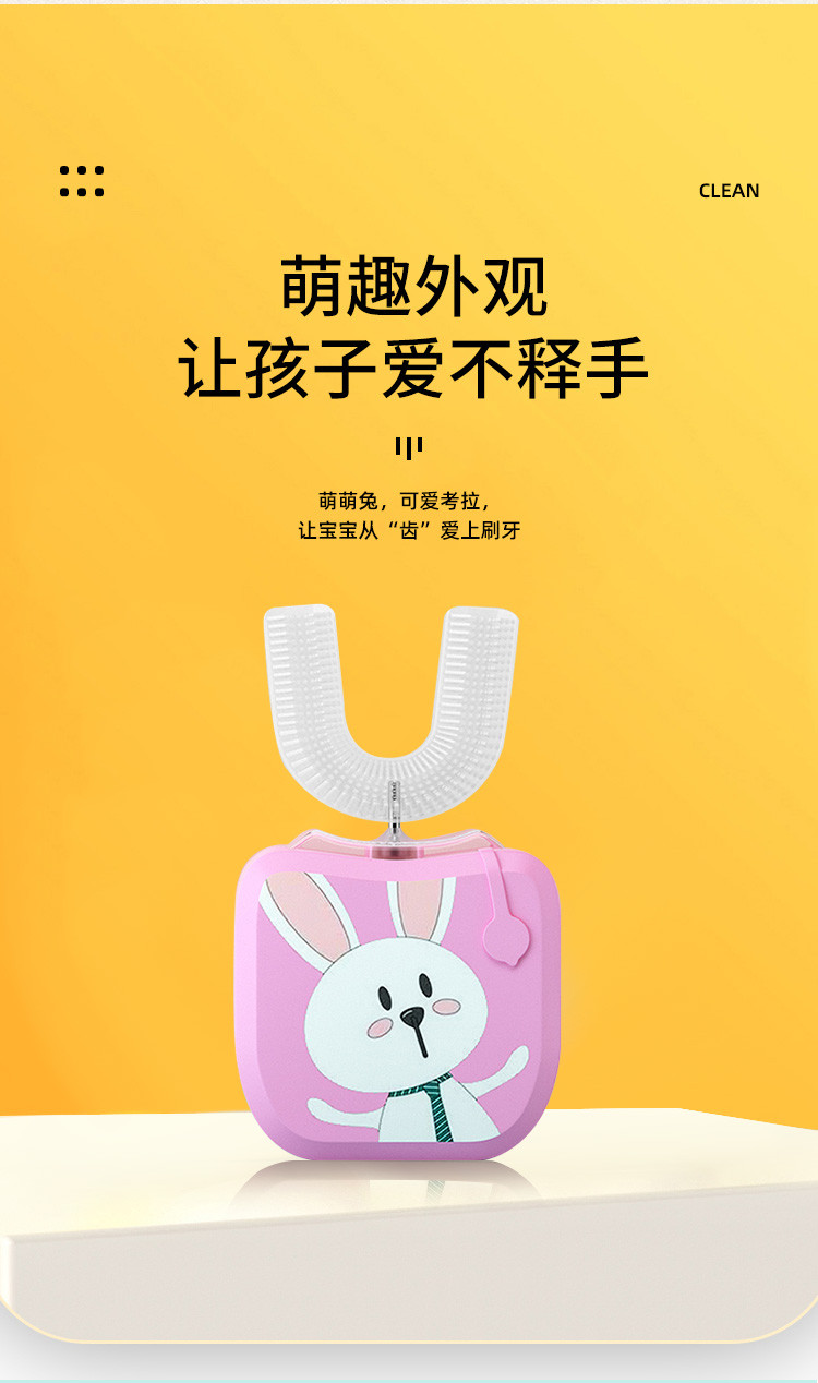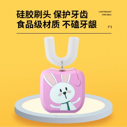 【加慕斯牙膏】儿童电动牙刷U型全自动懒人牙刷软毛硅胶刷头粉兔